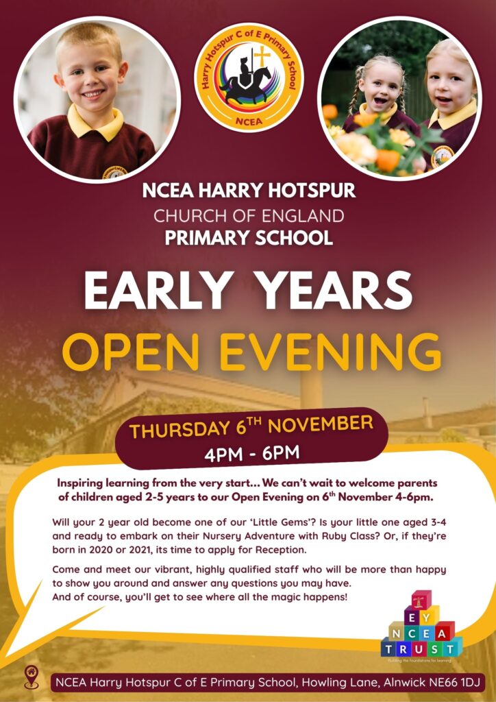 Parents/Carers of Alnwick, you are invited to join us for our Open Evening on Thursday November 6th from 4 – 6pm. We’re so excited to show you around our school and outdoor provision (although hurry because it will be getting dark!)